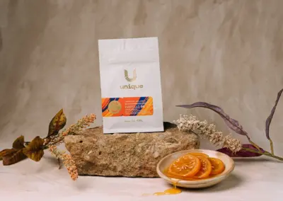 Na bebida, entrega doçura elevada, acidez cítrica bem integrada e corpo cremoso. As notas caminham por frutas amarelas maduras, laranja em calda, bergamota e ameixa-amarela, evoluindo para melaço, bala de caramelo e uma finalização doce, longa e envolvente, com lembranças de cocada escura.