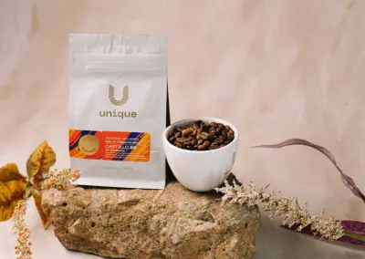 – Variedade Castillo: Originalmente desenvolvida na Colômbia, esta variedade foi introduzida de forma pioneira no Brasil por Jean Faleiros em 2019. No terroir da Santa Mônica, o “Castilho” se transformou em um ícone de inovação, entregando uma doçura excepcional e acidez cítrica marcante.