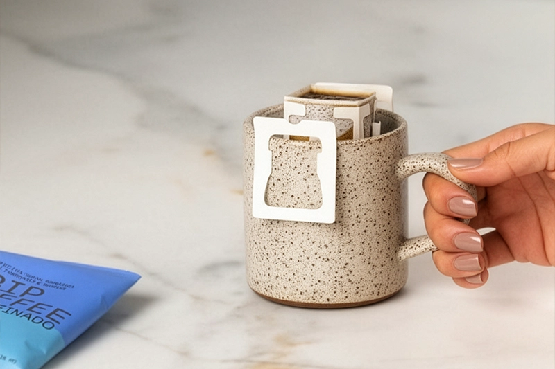 Com o Drip Coffee Descafeinad, você prepara um café filtrado fresco, direto na xícara. Basta abrir o sachê, encaixar na caneca, adicionar água quente e aproveitar. Simples assim.