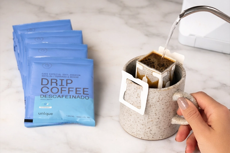 O Drip Coffee Descafeinado Unique não é apenas uma alternativa. É a união de duas escolhas conscientes: praticidade no preparo e respeito à experiência do café.