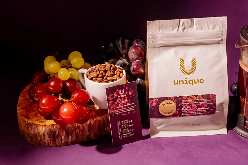 Na xícara, o Uva se mostra preciso e memorável: notas de uva, ameixa-preta, chocolate artesanal, uvas-passas e caramelo se apoiam em um corpo licoroso que sustenta cada camada de sabor. A acidez é viva e agradável, conduzindo o gole do início ao fim. A finalização é doce, limpa e marcada por lembranças de frutas e chocolate.