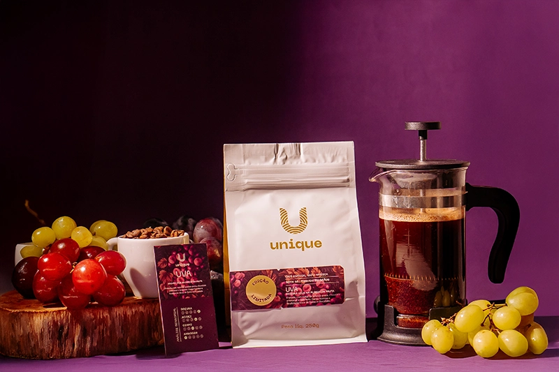 Este Uva é exatamente isso: um café claro, vibrante e naturalmente doce, que entrega na xícara a mesma sensação de morder uma uva madura, fresca e cheia de perfume.